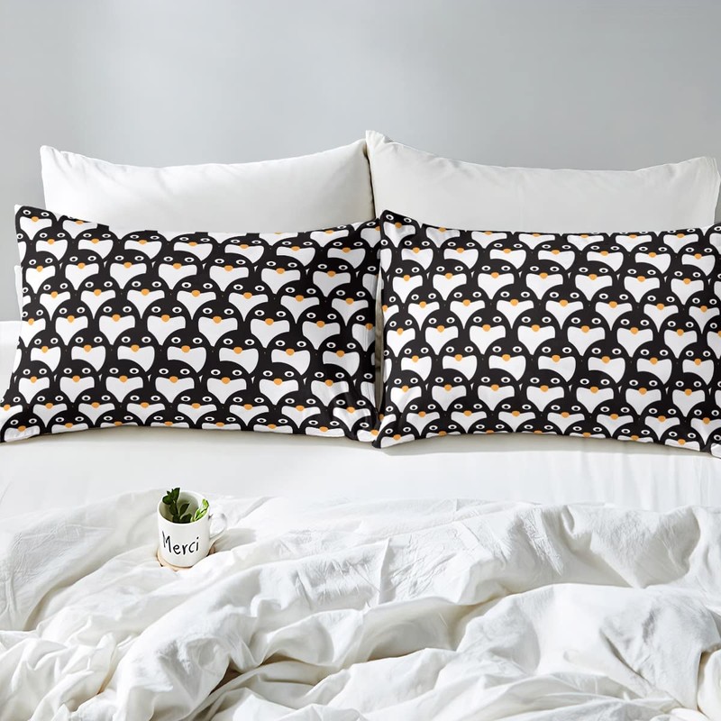 Kids Cartoon Penguin Sheet Queen Size,Arctic Snow Animals Bedding Set for Teens Girls Boys,Kawaii Wildlife Black White Cute Bed Sheet Set 4pcs (Deep Pocket Fitted Sheet + Flat Sheet + 2 Pillowcases)