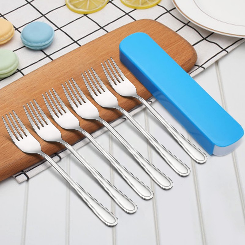 - 【HEALTHY MATERIAIL】 Joyfair toddler fork set are made of 100% food grade stainless steel, nickel-free, NO harmful substances, NO metallic taste, healthy for your kids, The extra blue plastic case makes it easy to carry the forks outdoors, Good replacement for plastic cutlery