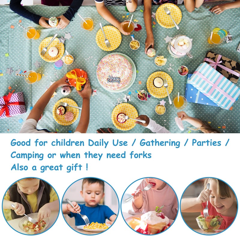 - 【MULTIPURPOSE FORK】 Ideal for toddlers, preschoolers, school age children, not only good for kids’ training and transfer to normal size cutlery set, but also fruits/appetizers/dessert forks for whole family, Great children forks for parties, school, travel, family dinners, etc