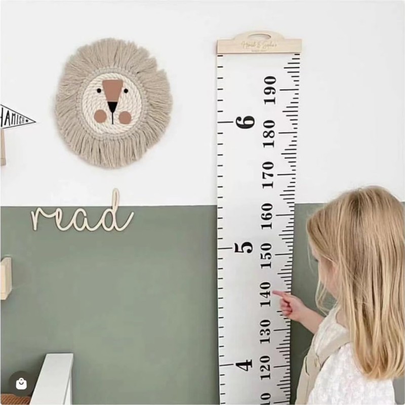 - The dimensions of the height growth chart:The dimensions of the baby height growth chart are 79 * 7.9 inches, featuring removable measurement marker. Adding your child's name makes it even more special.