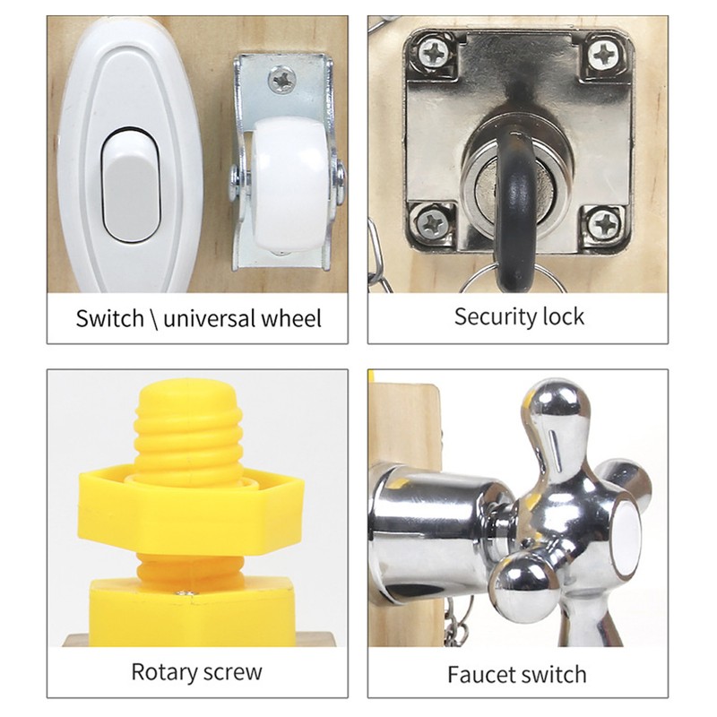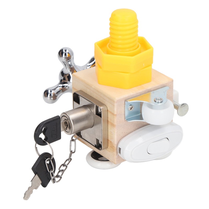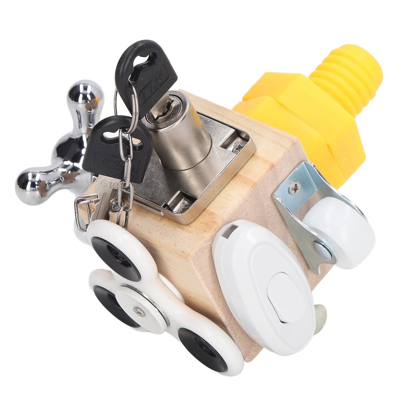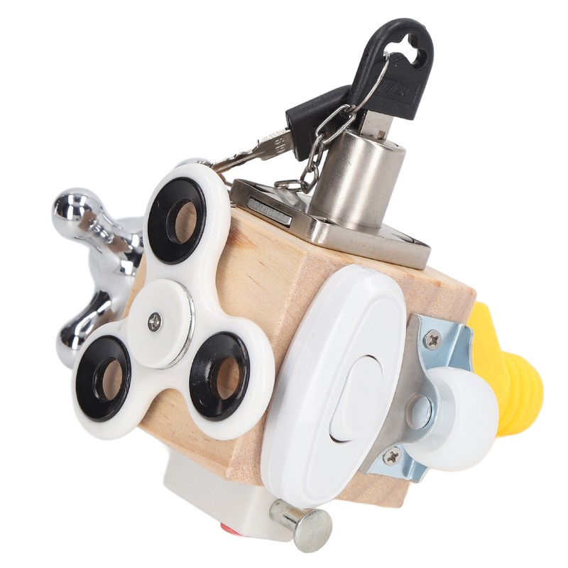 1、Improve Coordination: Wooden locks sensory toy help improve kids logical thinking, can strengthen hand eye coordination and gradually thinking ability. 2、Independent Development: Locks sensory learning toy can satisfies children curiosity in the game, and improve independent and hands on ability 3、Basic Skill Leaning: Locks sensory learning toy allows the child to understand life in advance, also learns and practices basic switching skills make life easier. 4、Suitable People: Lock key fingertip toy is suitable for children of all ages, such as preschool children, family students, and children with autism. 5、Metal Basswood: Locks sensory learning toy made of wooden and metal materials, firm and sturdy, which can keep your little ones away from electronic products.