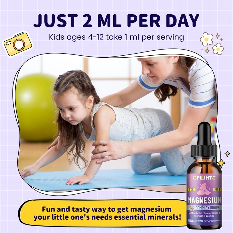 - Magnesium Drops, Gentle On The Stomach: Say goodbye to hard-to-swallow pills! Our kid-friendly liquid magnesium supplement is easy to take—simply add 2 ml to your child’s favorite drink, or place a few drops under the tongue. kids magnesium glycinate liquid absorbs faster than magnesium gummies, magnesium pills, or magnesium capsules, delivering essential nutrients more efficiently to the bloodstream for quicker support