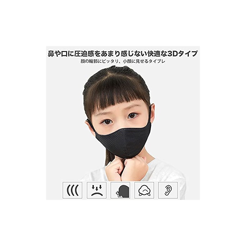 Kids Mask, Set of 3, Autumn Mask, Children's Mask, Washable, Cloth Mask, Sports Mask, Antibacterial, Odor Resistant, Easy to Breathe, Breathable, UV Protection, Moisturizing, Unisex, Adjustable Ear Straps, Small, Parent-Child (Black)