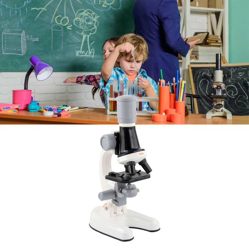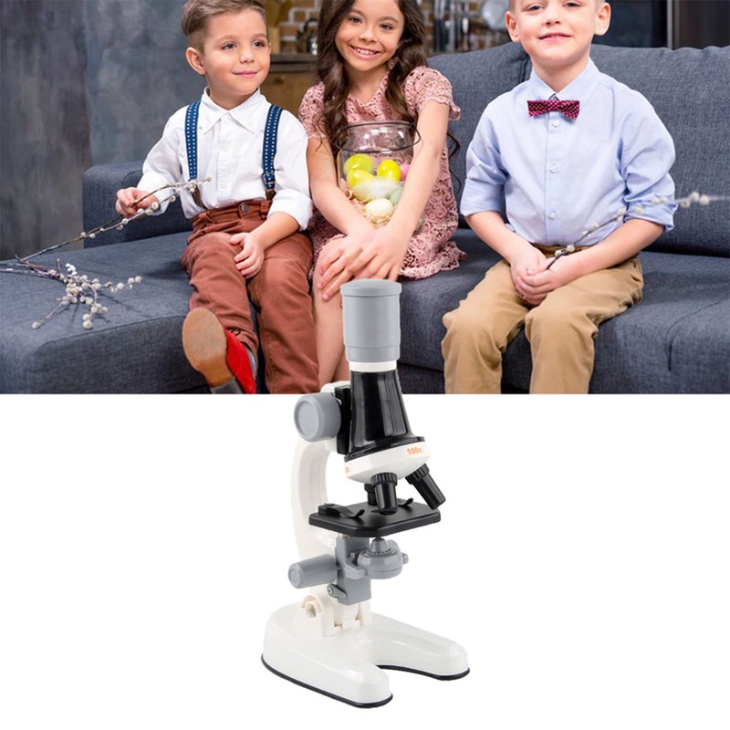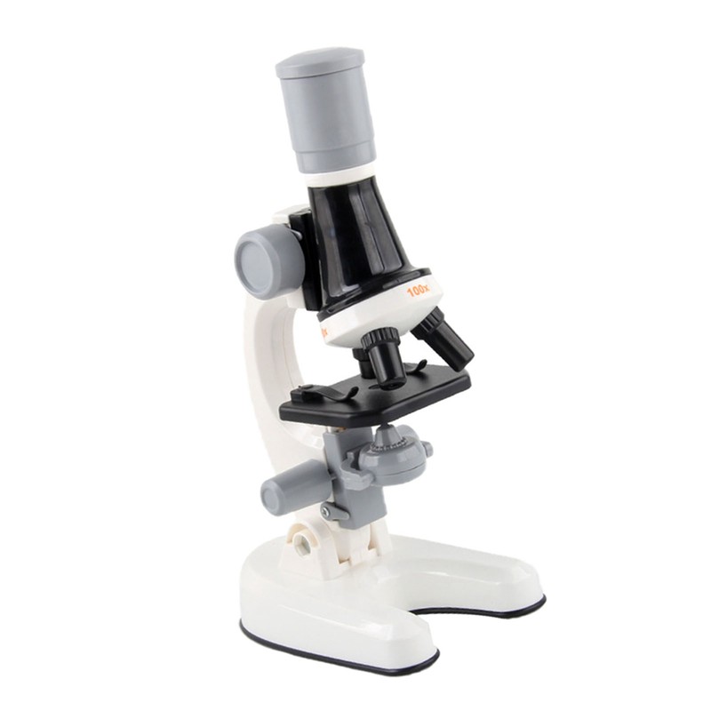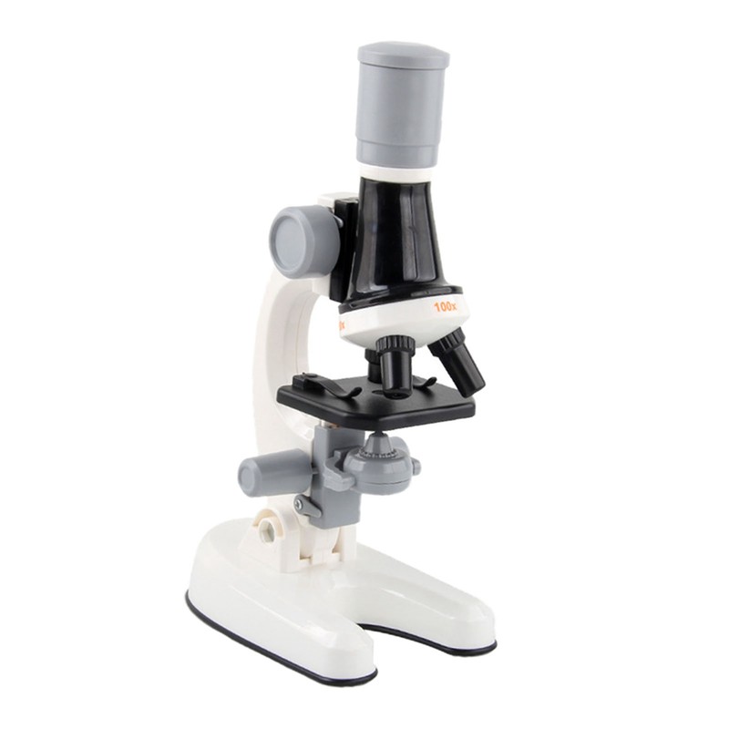 Kids Microscope Set 100x 400x 1200x Magnifications Angle Adjust LED Light Source Science Magnifier Toy White