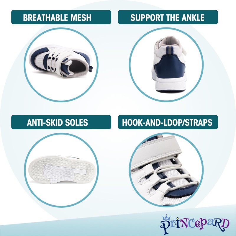 - High Top Shoes: Velcros for ability to adjust the strap length to the different feet width,strengthen the stability of shoes, maintain correct posture, prevent and correct heel tilt of children.