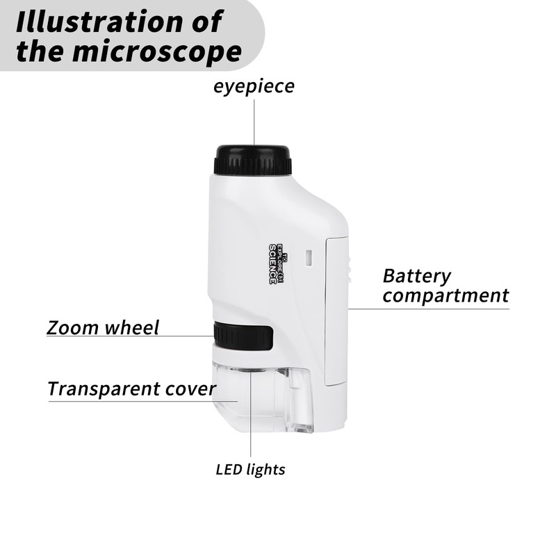 • ✨【Premium Material】- Our children pocket handheld microscope is made of high-quality ABS material, safe and durable, and safe for children. The package includes English instructions to increase children's interest and knowledge in science.
