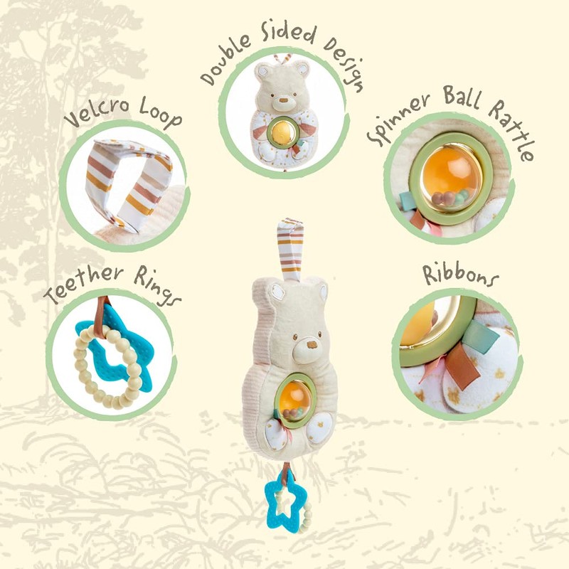 - COMFORTING SENSORY TOY: Hang this soft toy from a stroller or crib and watch your baby's eyes light up from all the fun and developmental features! Included are soft details for soothing babies.