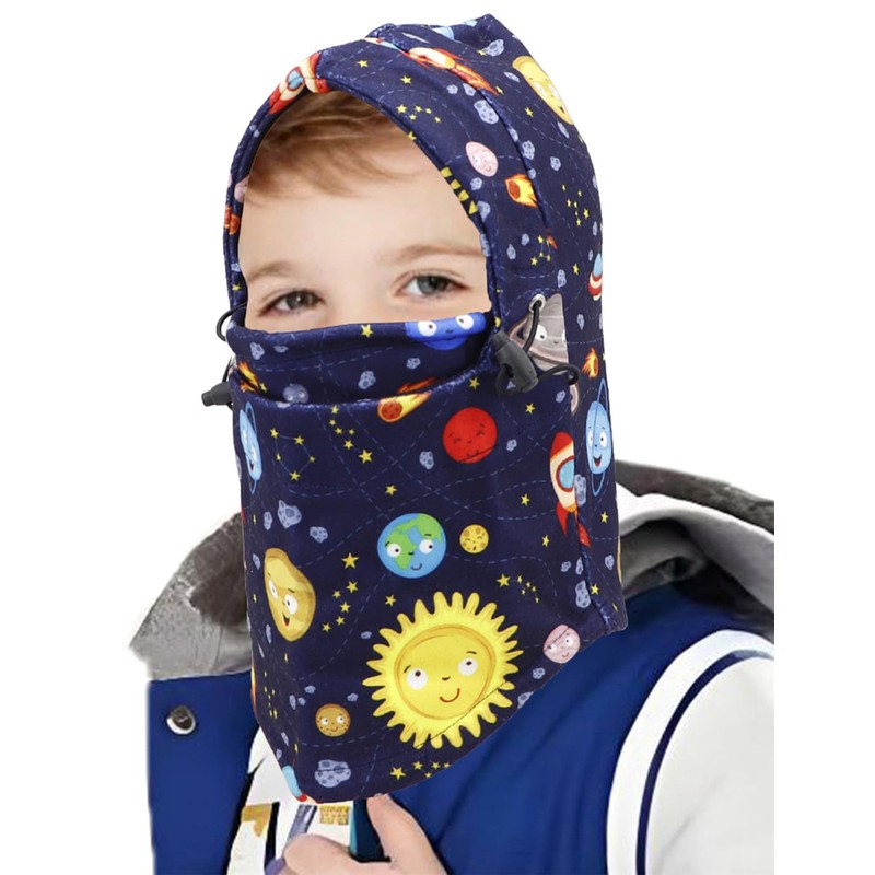 Kids Printed Balaclavas Ski Mask Neck Gaiter Full Face Mask Thermal Hood with Adjustable Drawstring (CA/US, Alpha, One Size, Solar System)