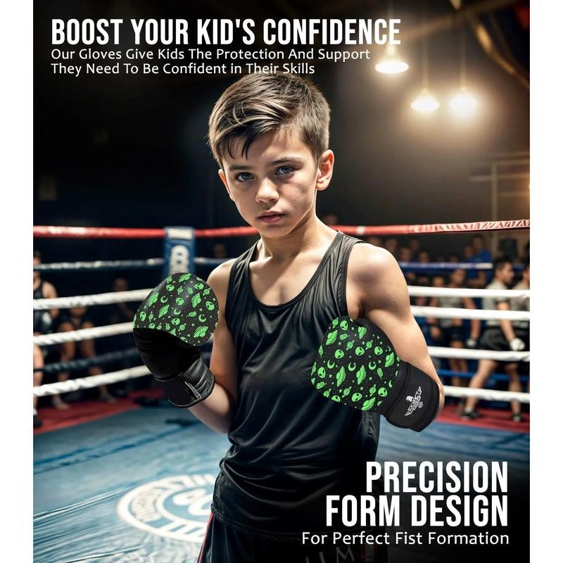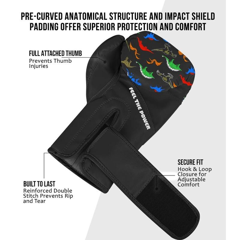 Kids Printed Knockout Boxing Gloves with Padded Protection (Dinosaur) - Size: 4OZ