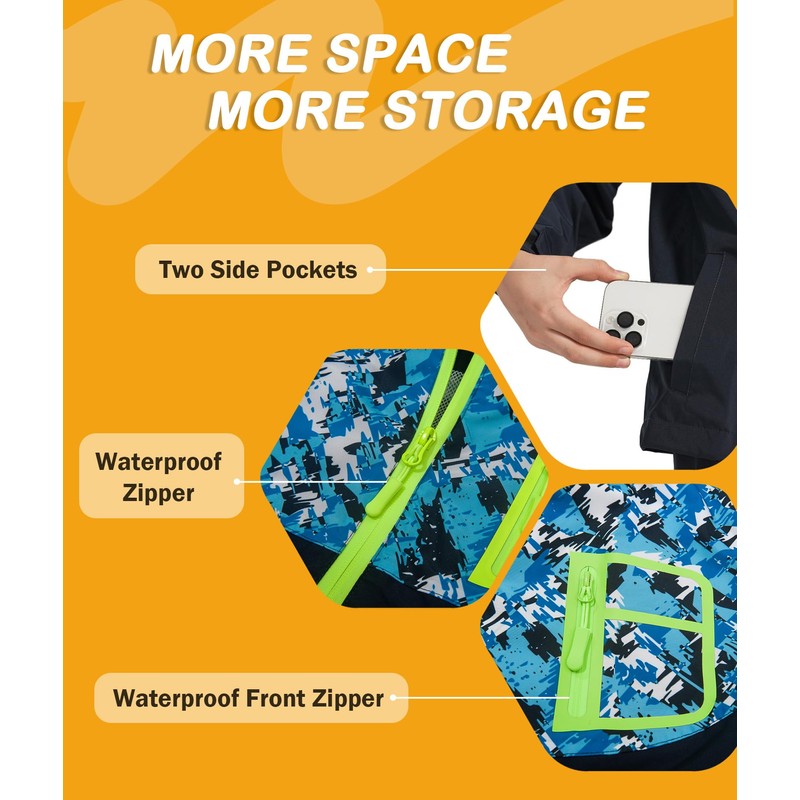 - 【Jacket Features】Swisswell youth rain jacket features a printed treatment, with 3 pockets including 1chest pocket and 2 side pockets. The chest bag and the jacket main zipper of the comes with a smooth, high-quality waterproof zipper that won't get stuck even when soaked in rainwater. The overall softness and comfort of the clothes make them easy to clean.