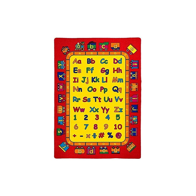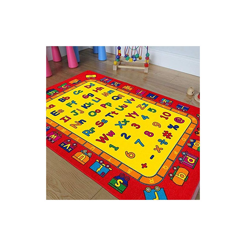Kids Rugs Educational/Playtime Red Yellow Fun Learning Numbers ABC’s Letters (A-Z and 1-9) Train with Upper Case and Lower Case Alphabet Crawling Mat Kids Playmat Waterproof for Babies, Infants