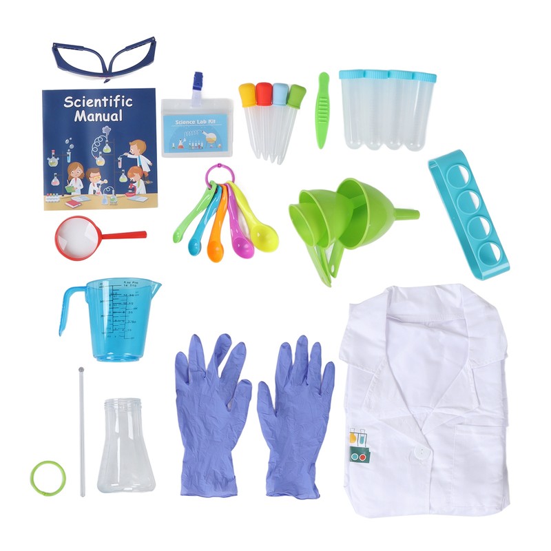 1、Cultivating Interest: Science kit can improve children's interest in experiments, and at the same time improve their skills in problem solving, sequential thinking and mathematical concepts. 2、Complete Tools: Kids science kit contains dropper, measuring glass, gloves, spoon, tweezers, magnifying glass, goggles and stirring bar, etc. The tools are complete. 3、Exquisite Gift: Science kit can be given to children who love scientific experiments as holiday gifts or birthday gifts, and they will love this interesting gift. 4、Wide Application: DIY science expert kit is very suitable for children scientists, various role playing parties in schools, future career day and other activities. 5、Plastic Material: Science kit is made of plastic, which is safe, environmentally friendly, safe to play, and suitable for children over 8 years old.