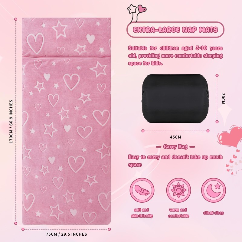 Kids Sleeping Bag Soft Plush Glowing Toddler Nap Mat with Pillow for Boys Girls Large Sleeping Mat for Daycare Preschool Kindergarten