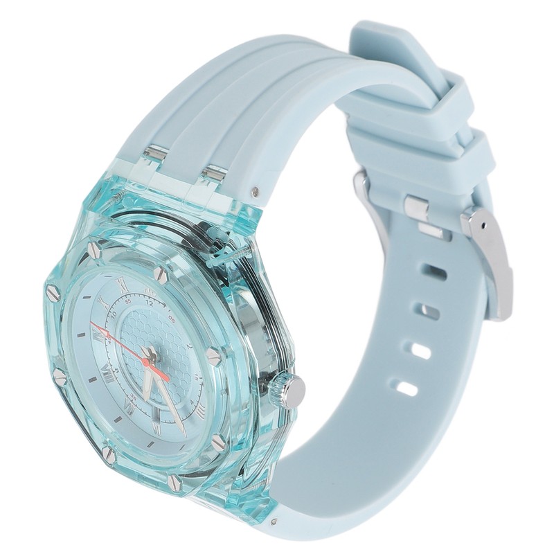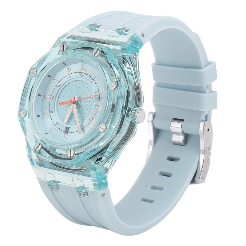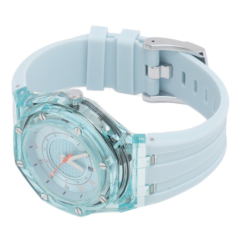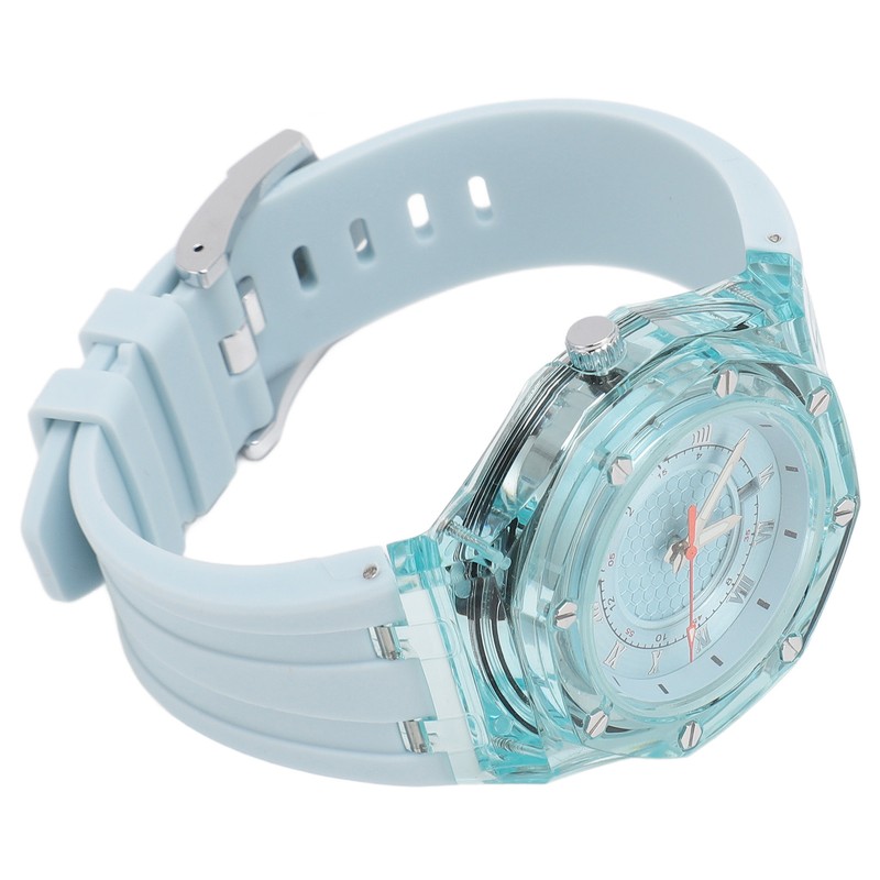 Kids Sports Watch Accurate Time Luminous Waterproof Quartz Watch with Transparent Dial Rubber Strap Blue