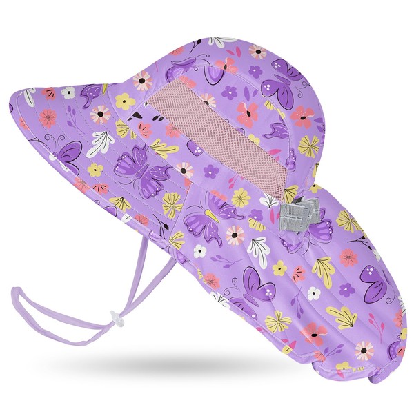 Kids Sun Hat UV Protection Unicorn Summer Beach Play Hats Wide Brim Neck Flap for Girls Boys, Purple, 2-9 Years