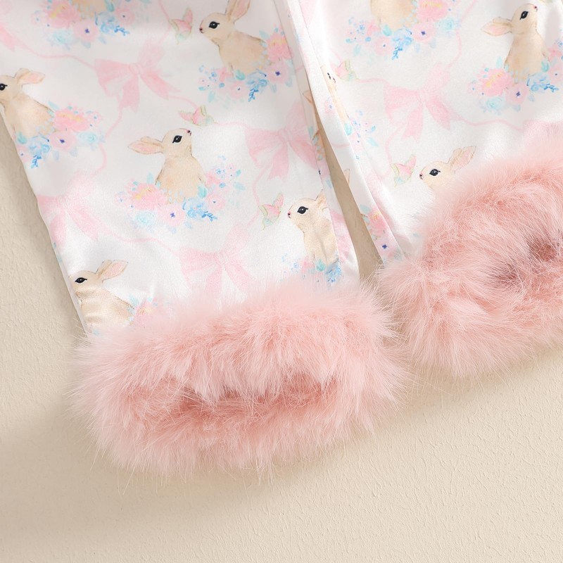 Kids Toddler Girls Silky Satin Easter Pyjamas Set with Feather Trim Long Sleeve Button Down Tops and Bottoms Easter Egg Pajamas Sets Matching Babies Easter Pjs (Bunny Light Rose, 18-24 Months)