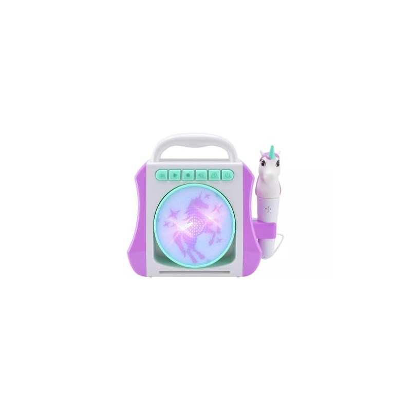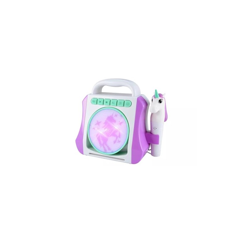 - INTERACTIVE DESIGN: Features a unicorn-themed boombox with LED light display and detachable microphone perfect for children's entertainment
