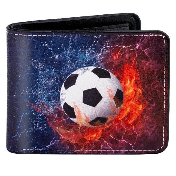 - 【Lightweight & Spacious】: The super cool soccer pattern on the teen boy wallet adds a unique charm to the wallet and is a perfect gift for children. Size:4.7*3.7*0.6 inch. Fits easily into your pants or shirt pocket for easy carrying