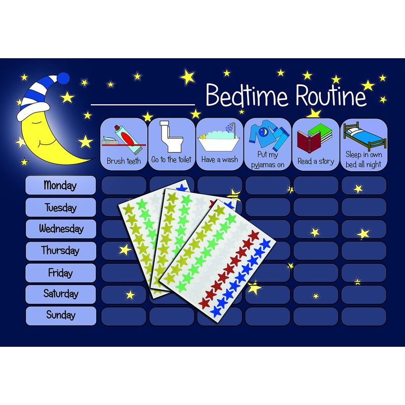 • Bedtime routine chart: kids2learn presents our bedtime workout reward chart. Format A4. This bright and colorful chart is designed to encourage children to follow the bedtime routine.