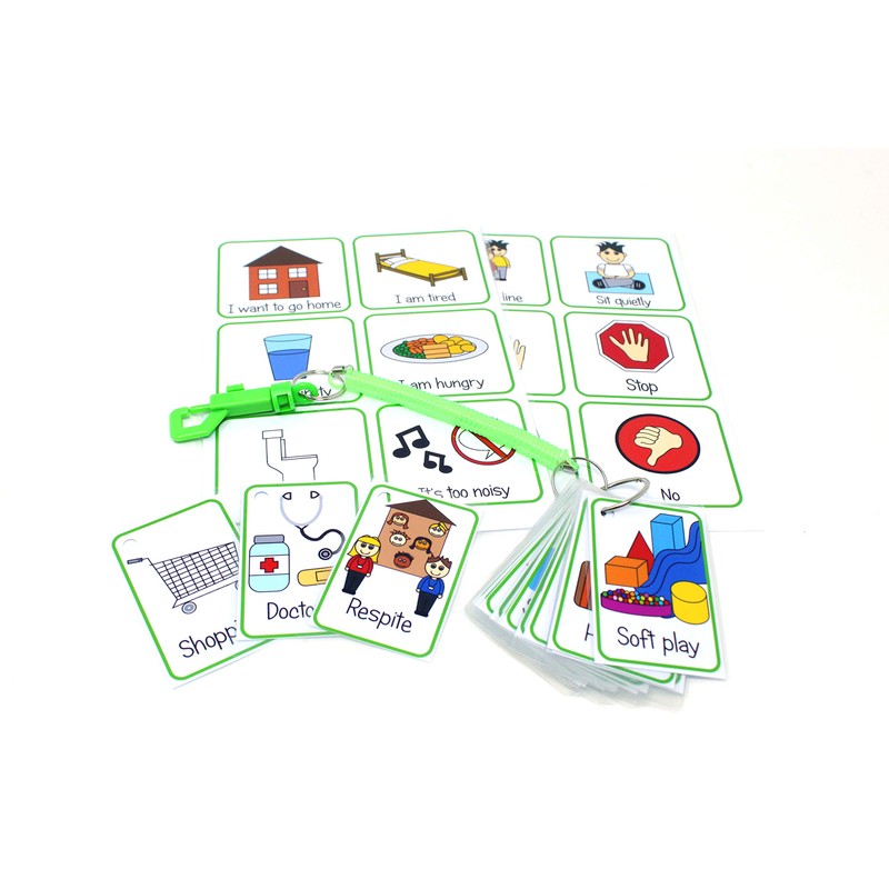 kids2learn Out And About Activity Cards special needs communication flash cards & bungee set for non verbal children adults ADHD ASD Autism