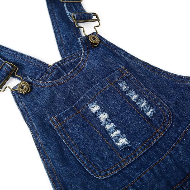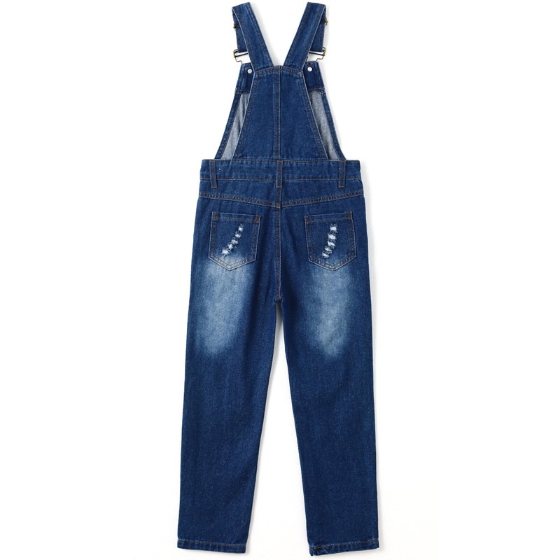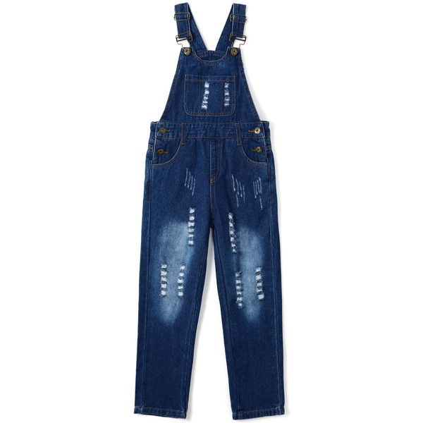 KIDSCOOL SPACE Girls Classic Big Bib Ripped Holes Jeans Overalls Pants,Blue,5-6 Years