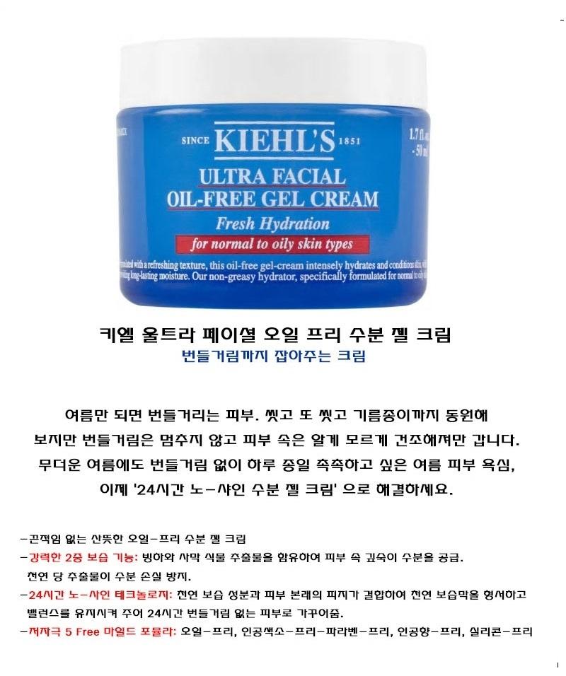 Kiehl's Ultra Facial Moisture Cream 50ml/Oil-free Gel Cream 50ml/Facial, Facial Moisture Cream 50ml / 키엘 울트라 훼이셜 수분크림 50ml/오일프리 젤 크림 50ml/페이셜, 훼이셜 수분 크림 50ml