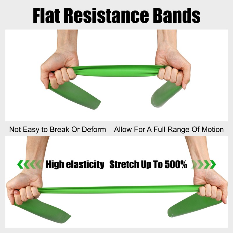 - ☞【High Elasticity】 These flat band stretchy bands for exercise can stretch up to 500%, they are not easy to break nor to deform if they are not stretched more than 5 times its length at rest. This feature of these elastic stretch bands for exercise for women allows for a full range of motion while exercising.