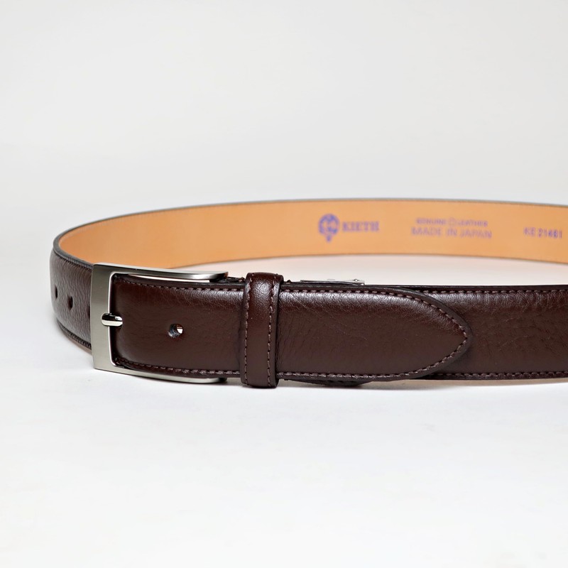 KIETH Men's Business Belt, Soft Shrink Oil Leather, Dark Brown, Adjustable Size, Made in Japan, dark brown