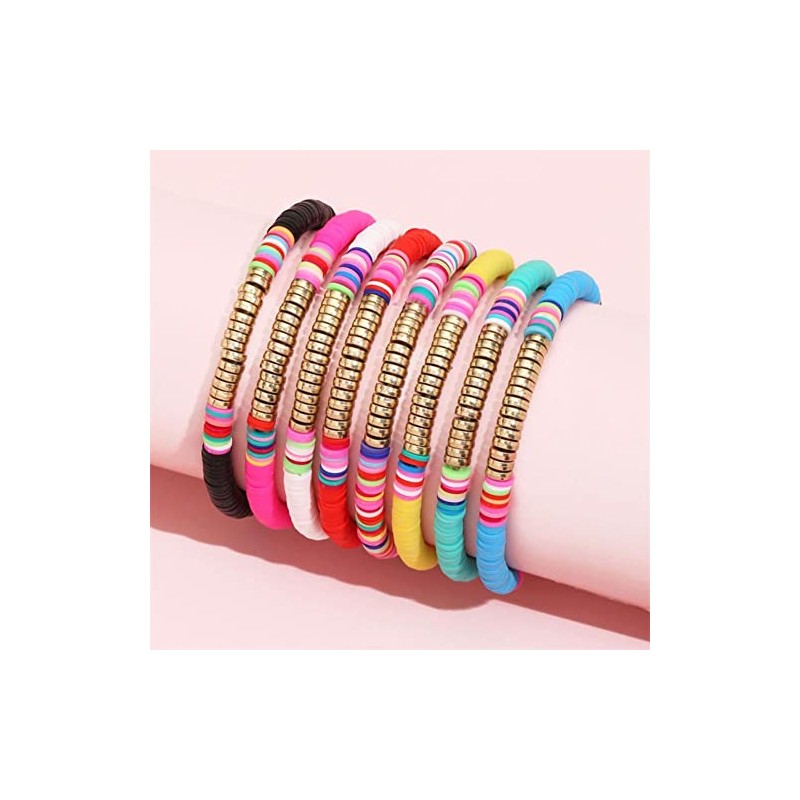 • 【COLORFUL BRACELET SET】 For beach jewelry, we love a mix color of effortless layering bracelets. Bold and vibrant, the Bohemia bracelets are consist of flat clay beads and gold plated sequins on elastic bands.