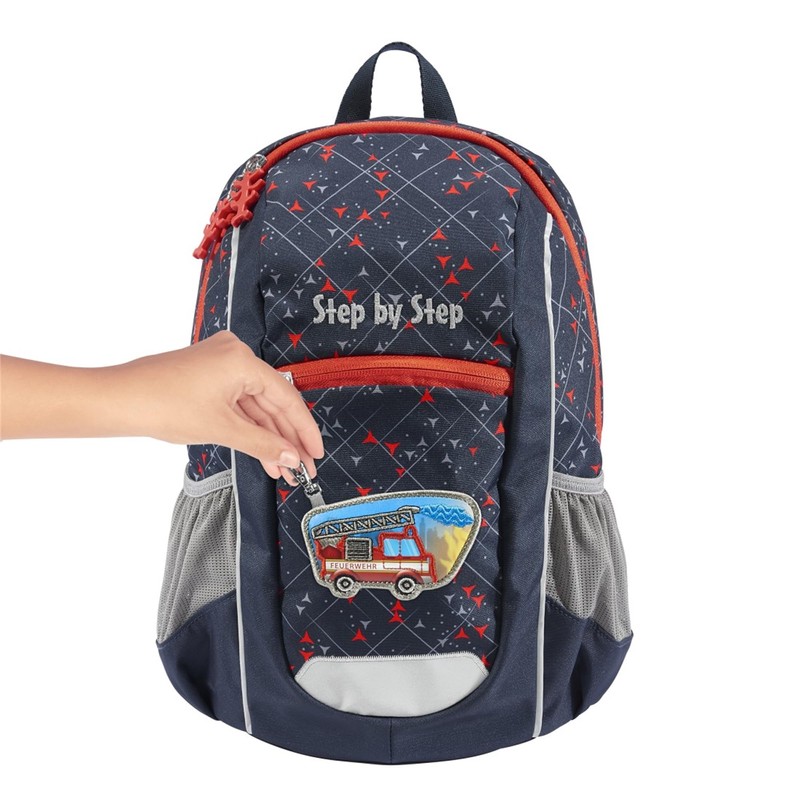To improve the visibility of girls and boys, the front pocket is equipped with reflective elements and logo embroidery. The hanging loops can be attached to pendants and small cuddly toys.