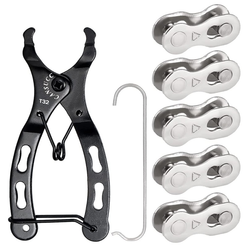• Bike Chain Connector Specifications: 6/7/8 Speed Chain, Universal Chain Connector, Weight 2.6g Pair, Qty 5 Pairs Bicycle Chain Pliers Length 93mm Width 43mm Weight 52g