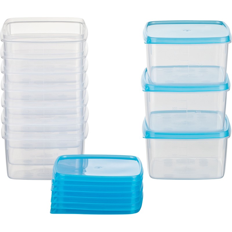 - You will receive sets of mini freezer containers, each with its own blue lid. Please choose from our different sets.