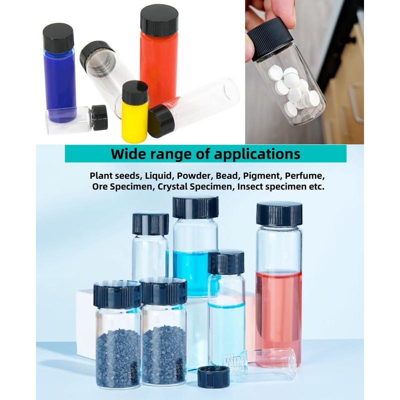 - 【Leak Proof】: Glass vials with screw caps with leak-proof caps, which combined with the threaded spout, better prevents the liquid from leaking or evaporating.