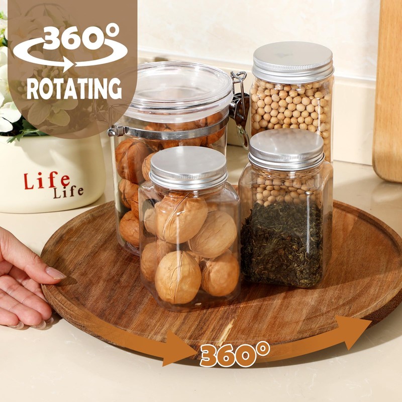 - Ideal Cooking Assistant: the package includes 4 aesthetically pleasing kitchen acacia wood organizers, ideal for conveniently storing seasonings like salt, vinegar, pepper, and olive oil near your cooking area; It can also function as a decorative piece for your tables, holding items such as napkin holders, honey jars, cinnamons, sugars, and even flower vases; Particularly, these rotation trays are designed to keep your tables tidy and organized