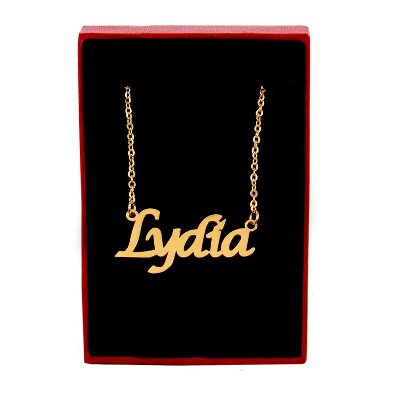 Kigu Lydia Personalized Name - 18ct Gold Plated Necklace - Adjustable Chain 16" - 19" Packaging