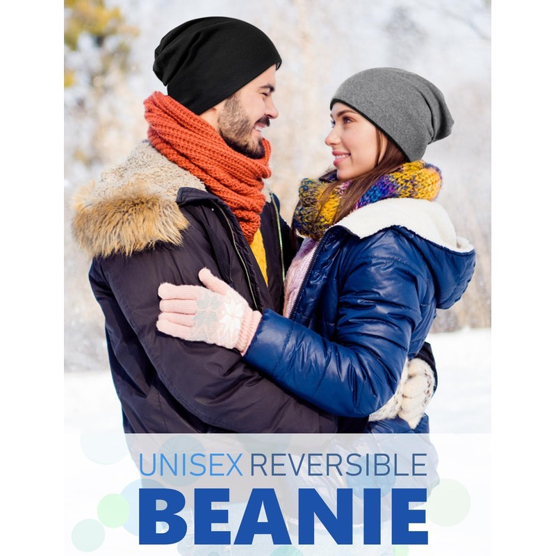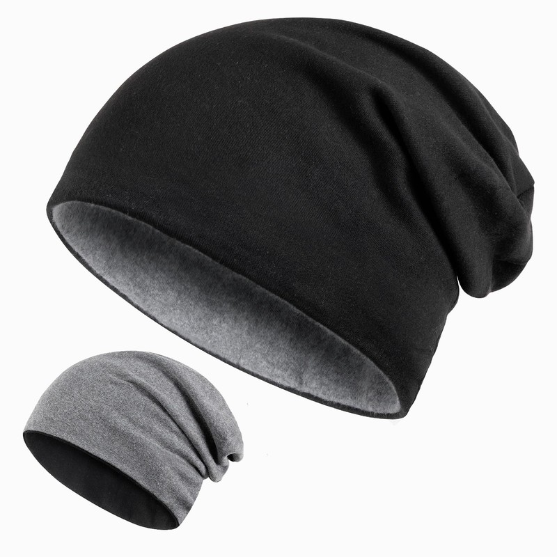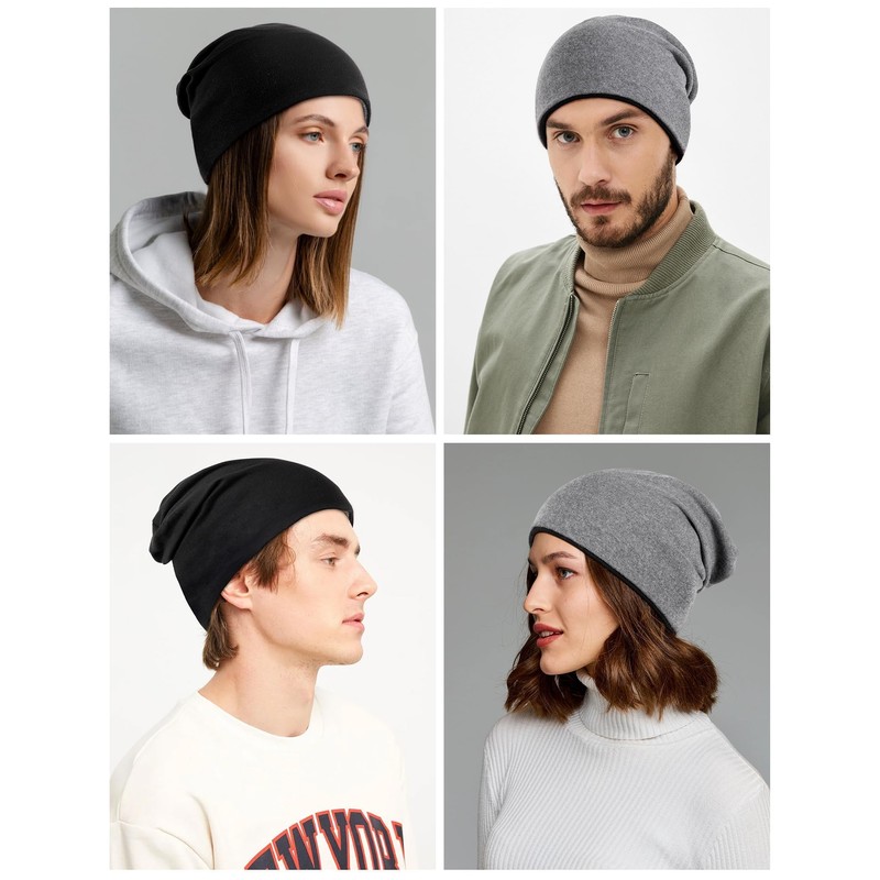 Kiiwah 2-in-1 Reversible Beanie Hat for Men and Women, Unisex Slouch Beanie, Chemo Hat, Lightweight, Long Beanie Hat for Spring, Autumn, Winter (Black, Grey), Black, grey