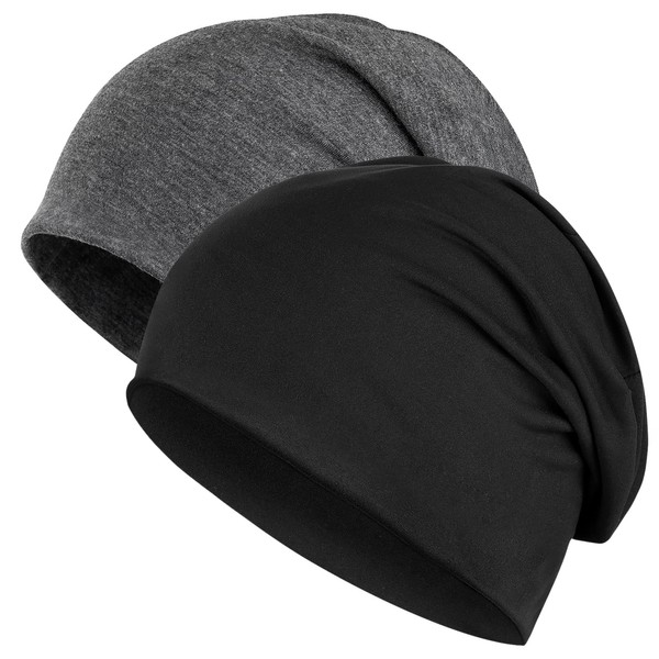 Kiiwah 2 Pieces Slouchy Beanie Hat for Men and Women, Cotton Winter Hat, Autumn Thin Hat, Warm Beanie Hat, Slouch Unisex Long Beanie for Running, Skiing, Cycling, Outdoor, Black, grey.