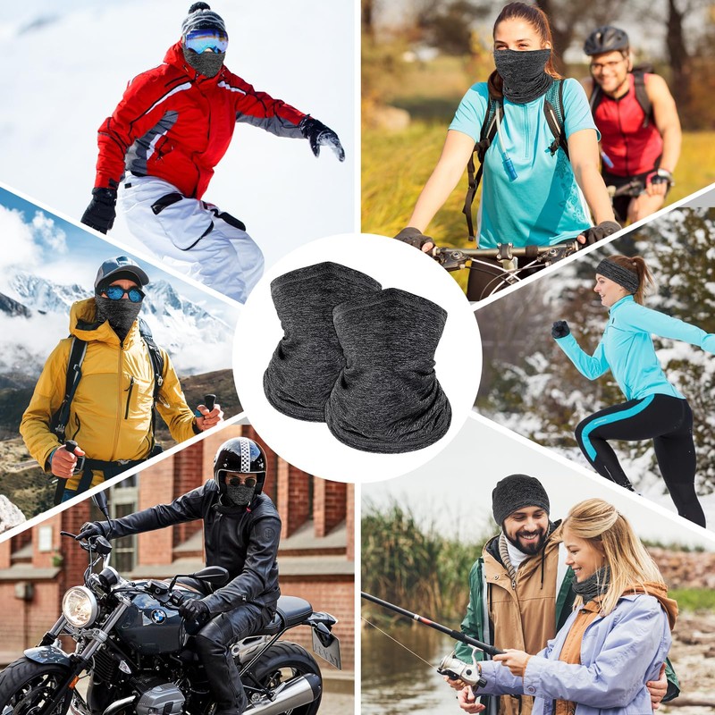 Kiiwah Pack of 2 Multifunctional Scarf, Tube Scarf, Elastic Neckerchief for Men and Women, Soft Loop Scarf, Windproof Neck Warmer, Sports Neck Warmer for Outdoor Skiing, Motorcycle, Running, Cycling,