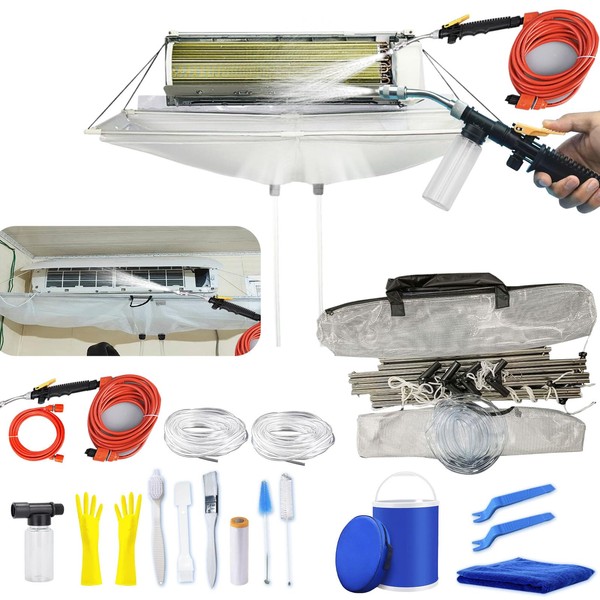 - 4. DIY-Friendly Setup in 6 Mins—Guaranteed Skip the repair bills! Install this mini split cleaning kit or a split ac cleaning kit tool-free with our intuitive design. Dual-layer waterproof lining shields floors/walls from drips, and our team’s on standby if you need help. Ideal for renters, homeowners, or HVAC newbies—keep your mini-split pristine without the hassle