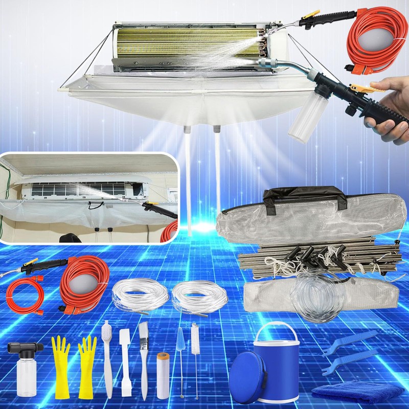 - 2. 20-in-1 Pro Cleaning Toolkit: Precision Meets Power Ditch basic brushes—this isn’t your grandma’s cleaning set. Packed with 20 specialty tools, including a dual-density bristle brush (gentle on fins, tough on grime), a 360° swivel vent roller, and a non-marring pry bar,No half-measures here—only precision-engineered tools.split ac unit cleaning bag or a ductless mini split cleaning kit Perfect for mini-split systems, coils, or ducted units, Large duct machine