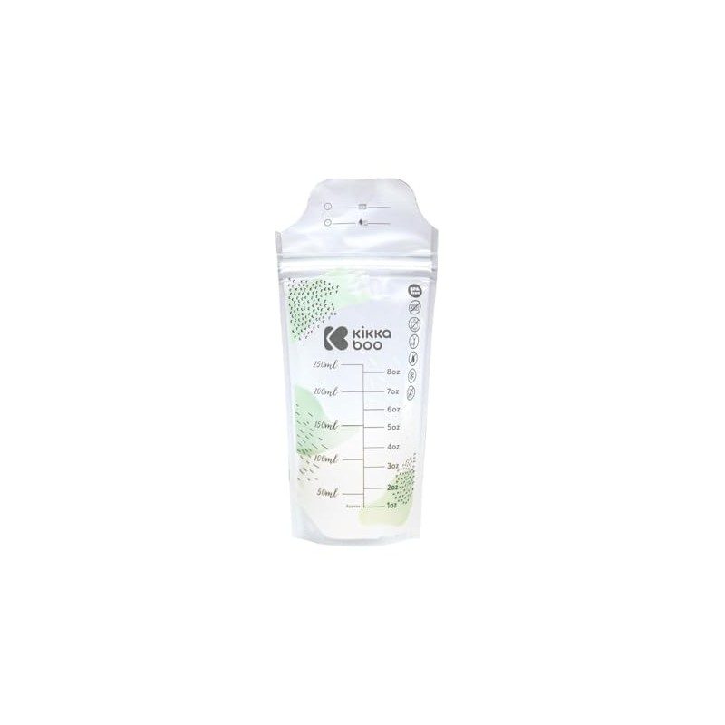 With the Kikkaboo breast milk bags, the pumped milk can be stored hygienically. Thanks to its practical shape, it allows space-saving storage in the fridge or freezer. The double closure and sturdy material guarantee leak-proof storage. With the 50 bags, each with 250 ml capacity, you can create a supply of valuable breast milk. There is a labelling field on each bag for easy dating.