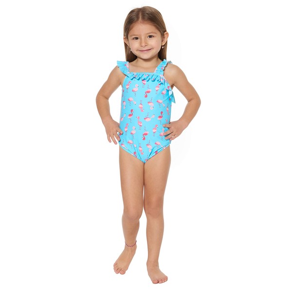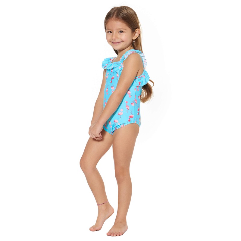KIKO & MAX Traje de baño de una Pieza para niña con Hombros asimétricos, Flamenco Turco, Talla 6X, Flamenco turq, 6X