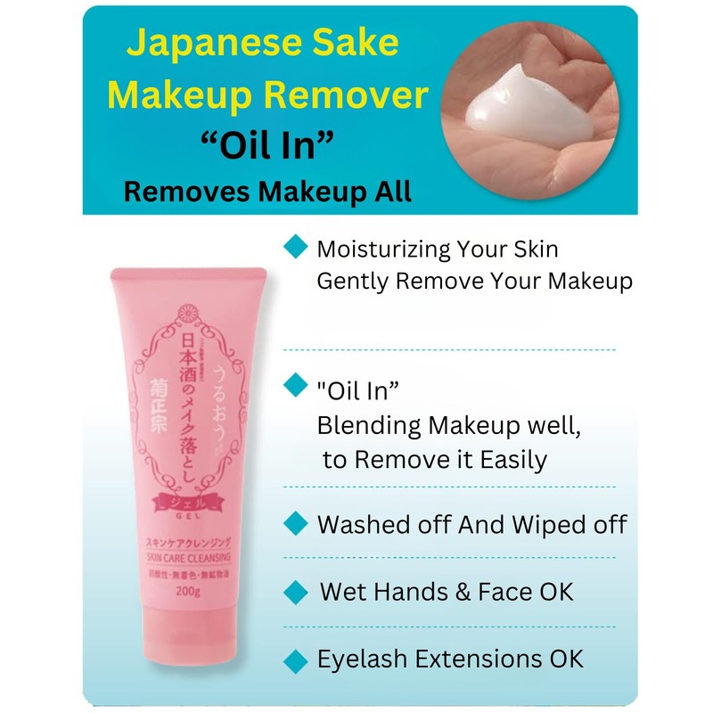 - Large capacity makeup remover formulated with Japanese Sake to remove makeup while remaining moisturized. Oil in and Run