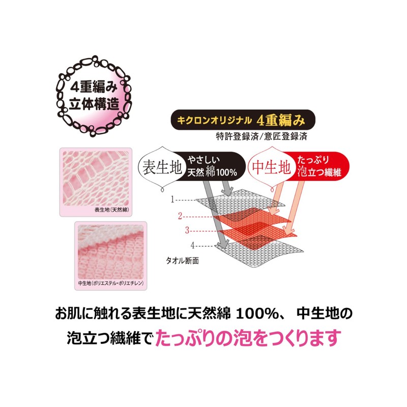 - An original knitted foaming cotton body towel made of 100% natural cotton on the surface that touches the skin