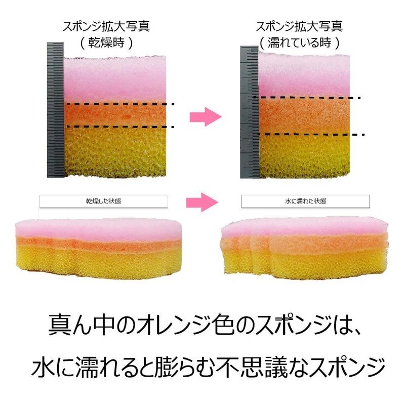 Kikuron Kitchen Sponge, Soft Type, Pink, 1 Piece x 4, Generous Foaming, Made in Japan, Kikuron Fine Awamotchi