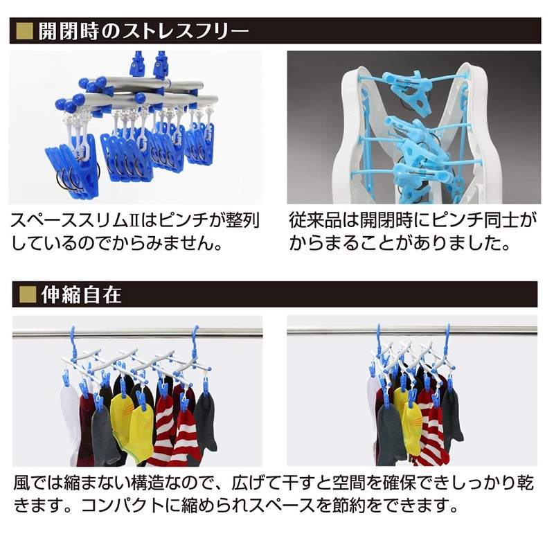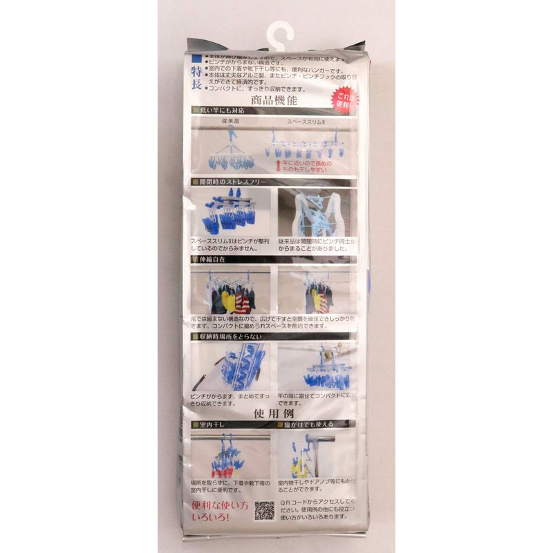 Kikuron Laundry Clothes Drying Hanger, Elastic Hanger, 14 Pinch, Blue, Interchangeable Pinch, Corner Hanger, Space Slim II
