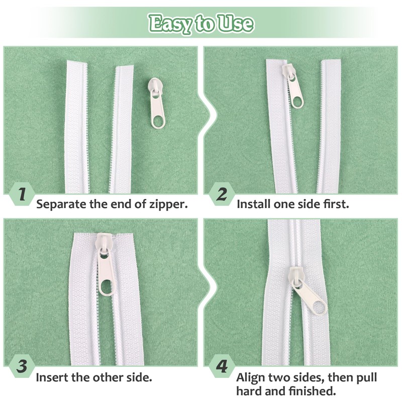 - Wide application: this tailless zip can be sewn by sewing machine or by hand and is suitable for sewing trousers, jeans, skirts, pet clothes, handbags, school bags, bedding, pillowcases, luggage accessories and other craft projects. The zipper replacement kit is ideal for a variety of sewing projects.