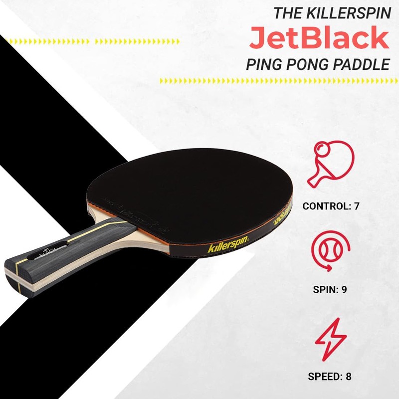 Killerspin Jet Black Ping Pong Paddle - Table Tennis Rackets for Beginner & Advanced Table Tennis Players - Flared Handle – Control with Comfort
