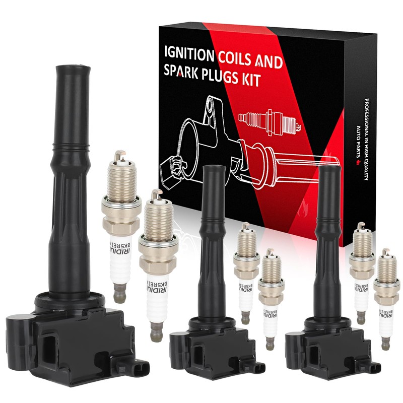 KILOAUTO 3 Ignition Coils with 6 Iridium Spark Plugs fit for Toyota for Tacoma 2004 3.4L V6 for Toyota for Tundra 2004 3.4L V6 Ignition Coil Pack Replacement UF156, C1041, GN10184 C-509