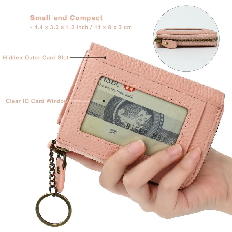 - Many compartments - 1 exterior photo window, 2 interior coins or cash pockets, 2 interior card slots, and 1 key ring